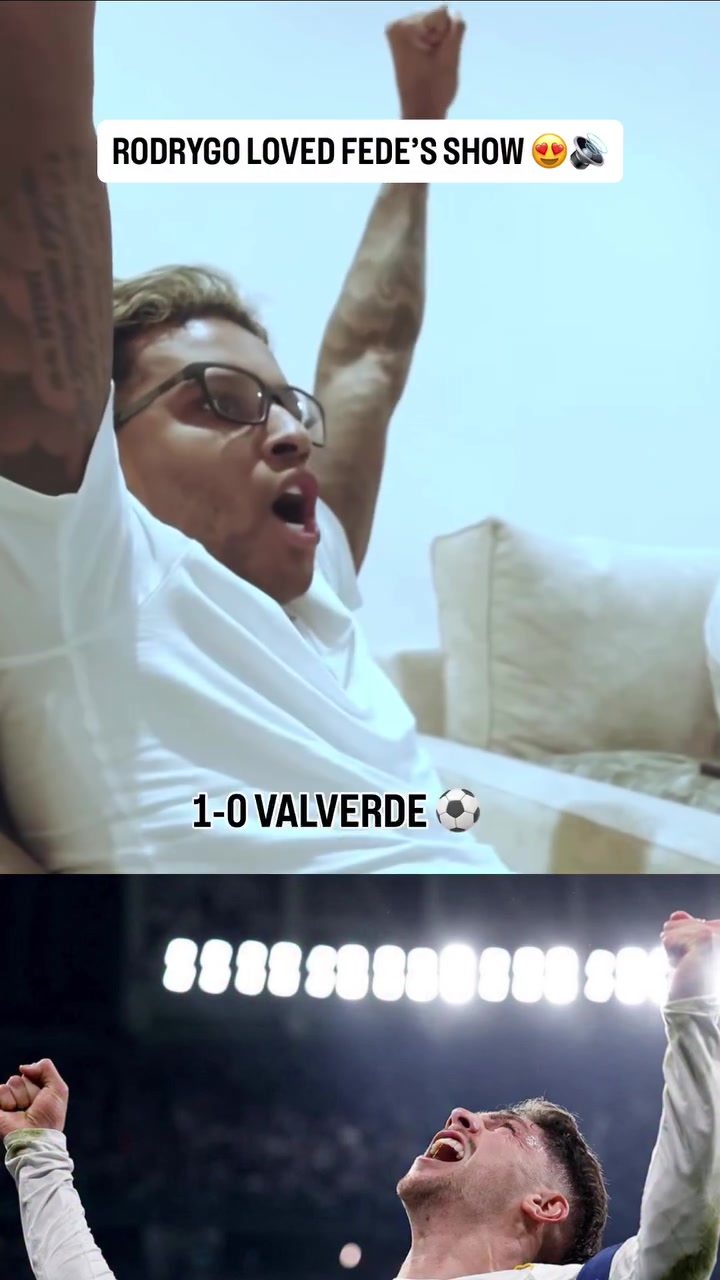 03月12日讯 凌晨欧冠1/8总决赛 首局 ,皇马3-0击败曼城,本场赛事 皇击鞠 员巴尔韦德戴帽,此前遭遇重伤的罗德里戈在家观看了本场赛事 ,并三次激动庆祝,振臂高呼。