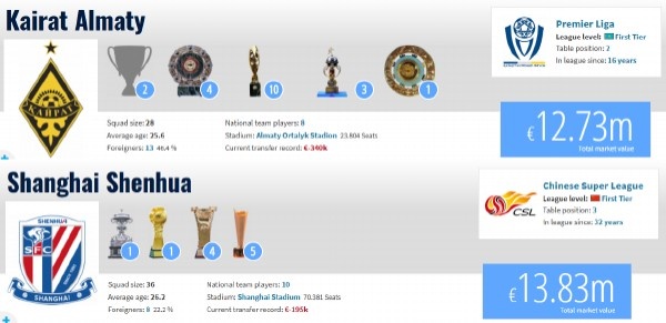 在哈萨克斯坦国内联赛,阿斯塔纳和阿拉木图凯拉特的竞争也黑白常强烈。本赛季踢完24轮后(全年有26轮联赛),阿斯塔纳拿到53分领跑积分榜。阿拉木图凯拉特少赛一场拿到52分,要是可以赢下剩余的3场比赛,他们将会卫冕哈萨克斯坦国内联赛冠军。