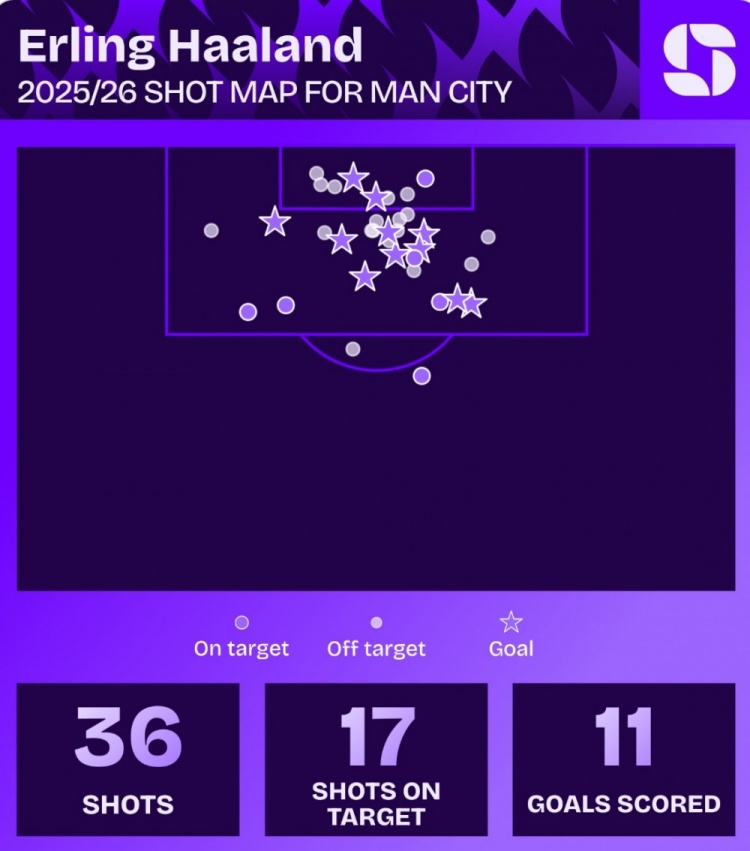 10月5日讯 Squawka统计了哈兰德本赛季的数据,他各赛事出战8场比赛,打进11球,近5场比赛攻入8球。