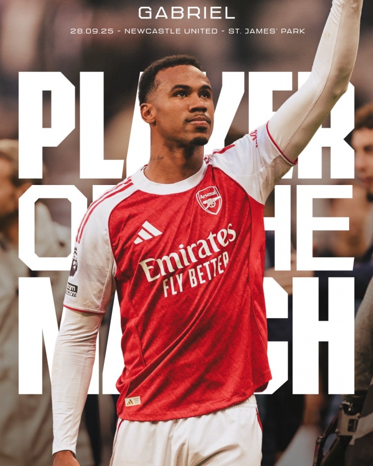 此役加布里埃尔补时阶段头球绝杀,匡助阿森纳取胜,阿森纳官方晓谕,他当选本场比赛队内最好球员。