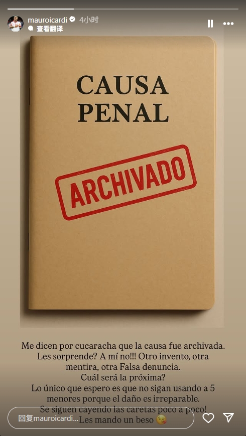 当天,伊卡尔迪更新社媒回报,他晒出一张附有“刑事案件 已了案”字样的图片,并配文:“又是一次执造,又是一个浮言,又是一桩误会。”