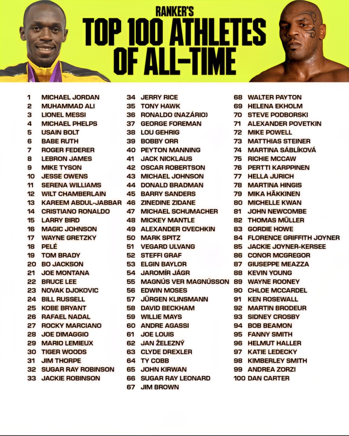 11月02日讯 外媒Global Statistics排历史百大证实员,梅西第3,仅次于乔丹和拳王阿里。足坛9东说念主上榜,仅梅西插足前10,C罗第14、贝利第18、大罗第36、王人达内第46。