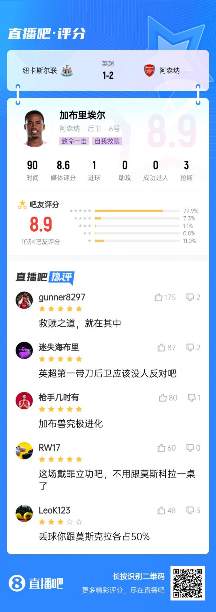 吧友热评:加布兽究极进化;英超第一带刀后卫应该没人反对吧