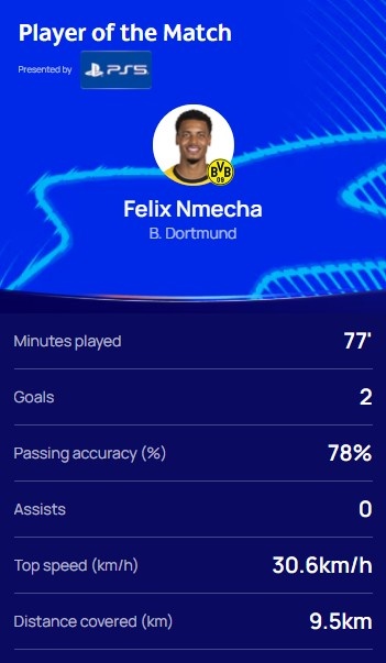10月22日讯 欧冠联赛阶段第3轮,多特蒙德客场4-2哥本哈根。恩梅查首发出战,赛后被评为全场最佳球员。