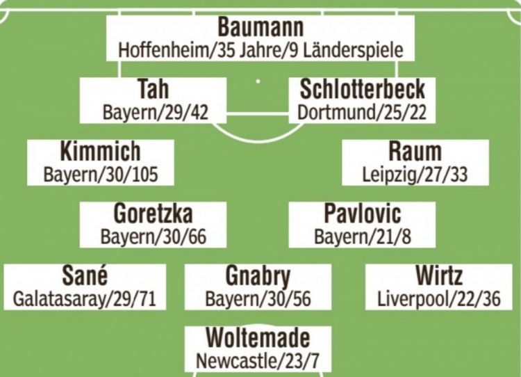 11月17日讯 北京时间明天凌晨,德国将在欧洲世预赛最后一轮比赛中主场对阵斯洛伐克,《图片报》预测了德国队本场比赛的首发阵容。