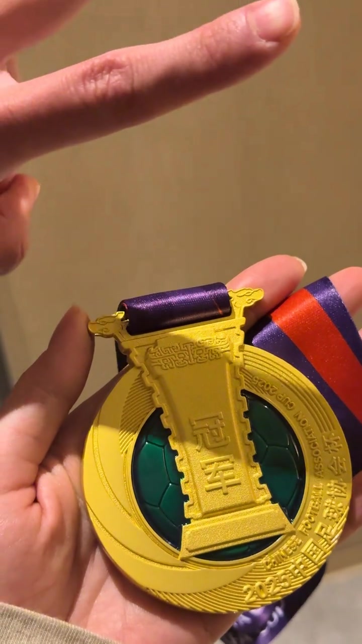 足协杯决赛,北京国安3-0击败河南,夺得足协杯冠军。吴少聪女友晒出足协杯冠军奖牌,配文:“男朋友带的苏州特产😝💏”。