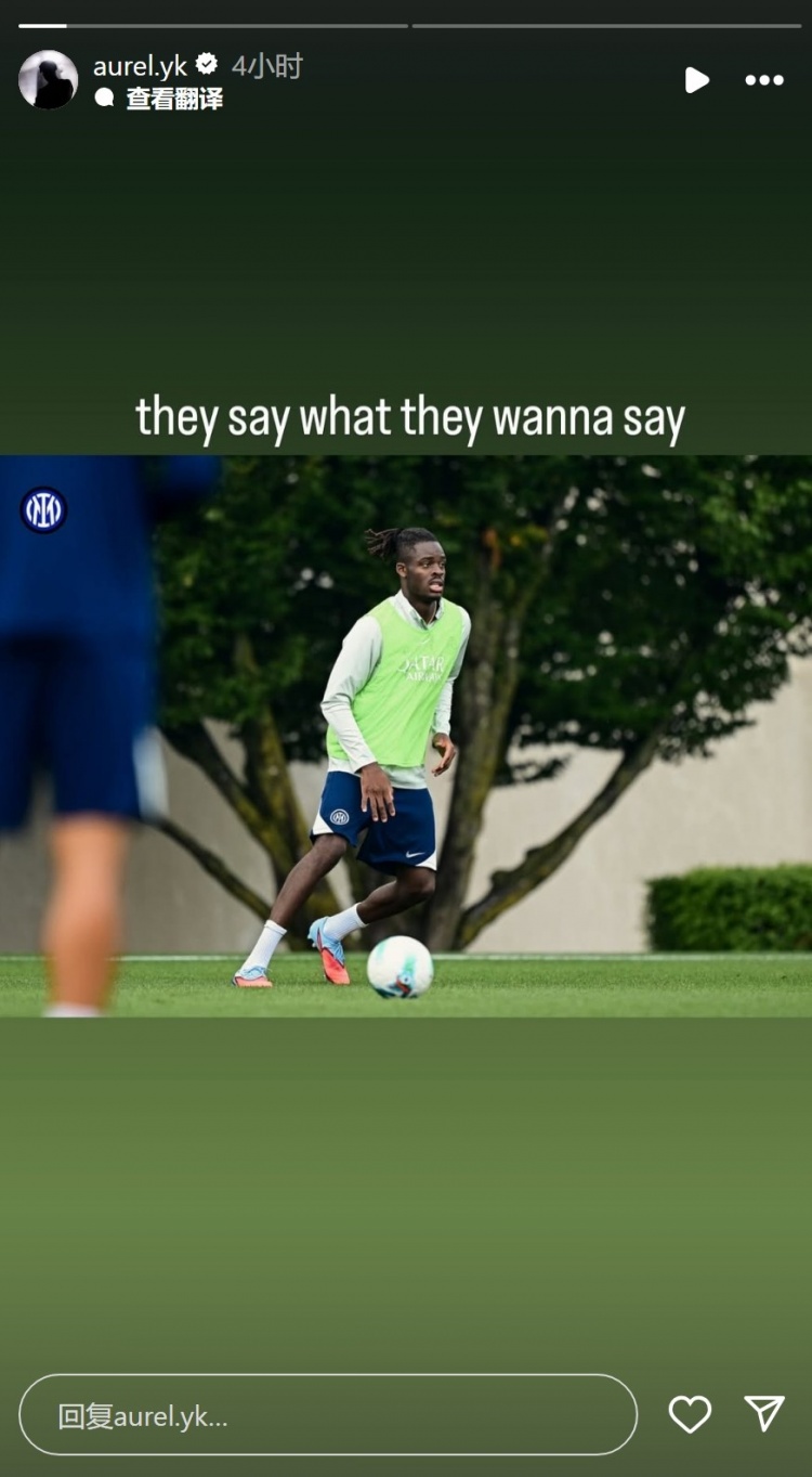 比塞克社媒晒出磨练像片,配文:“他们思说什么就说什么。”并配上了国米的队徽。