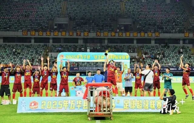 10月15日讯 10月12日晚,被称为“县超”的2025年五华县“球王杯”足球超等联赛放胆,横陂队夺得冠军,奖品是一头重达400斤的大肥猪。