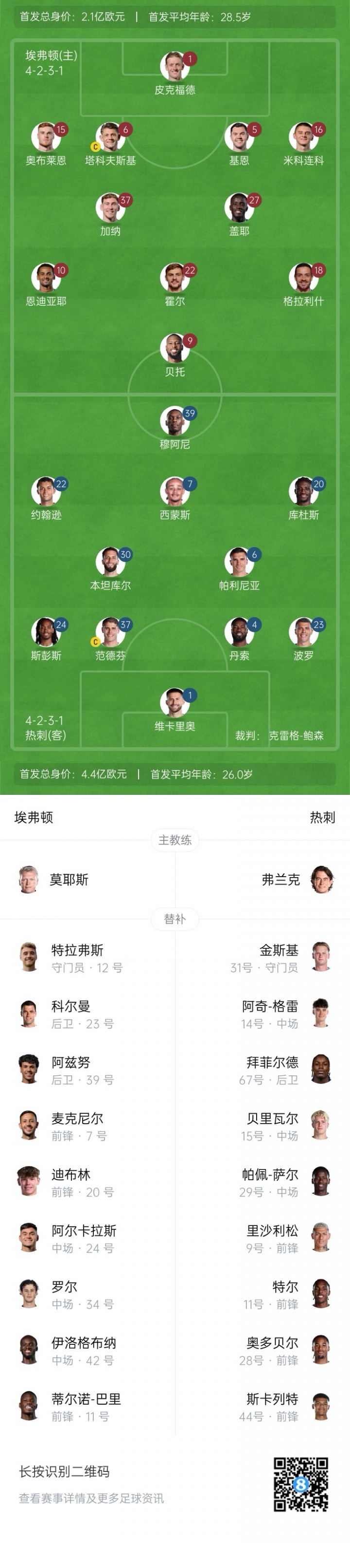 埃弗顿替补:12-特拉弗斯、23-科尔曼、39-阿兹努、24-阿尔卡拉斯、34-罗尔、42-伊洛格布纳、7-麦克尼尔、11-蒂尔诺-巴里、20-迪布林