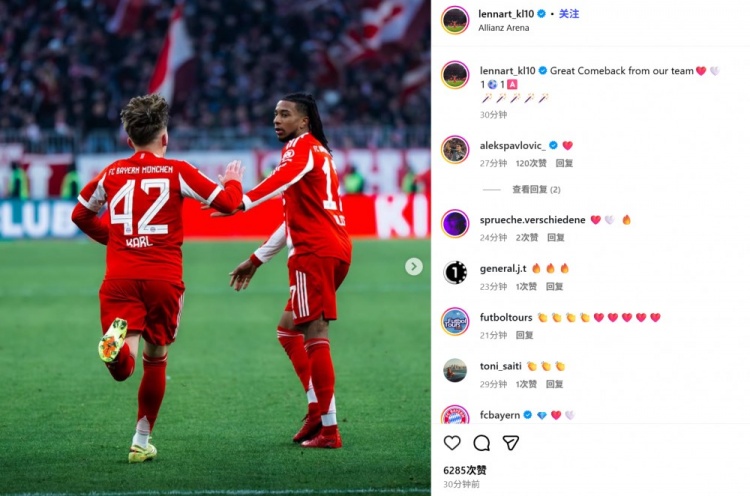 11月23日讯 拜仁在本轮德甲焦点战主场6-2逆转弗赖堡,17岁小将卡尔在上半场和奥利塞互相传射,匡助球队扳平比分。