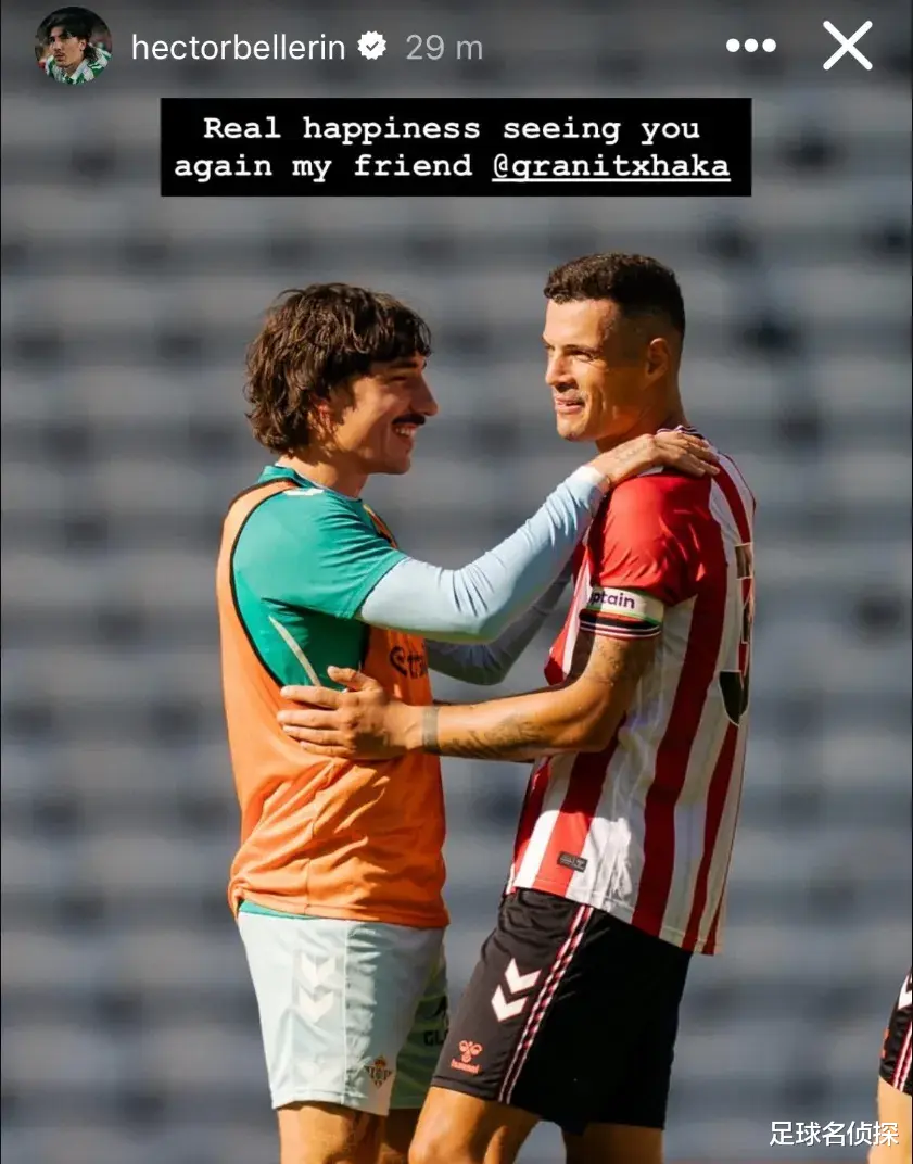 贝莱林发IG深化,他和前阿森纳队友扎卡在友谊赛上重逢。