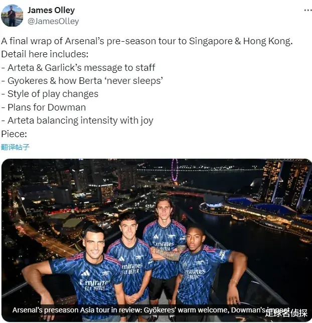 ESPN记者JO发文谈到了阿森纳本次亚洲行时刻发生在幕后的事情。