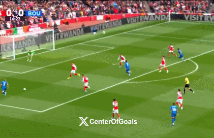 伯恩茅斯中路分球到左路,特吕菲尔传中,皮球打在萨利巴右脚外侧发生偏转,克鲁皮插上,小角度凌空踹射得手,伯恩茅斯1-0领跑 !