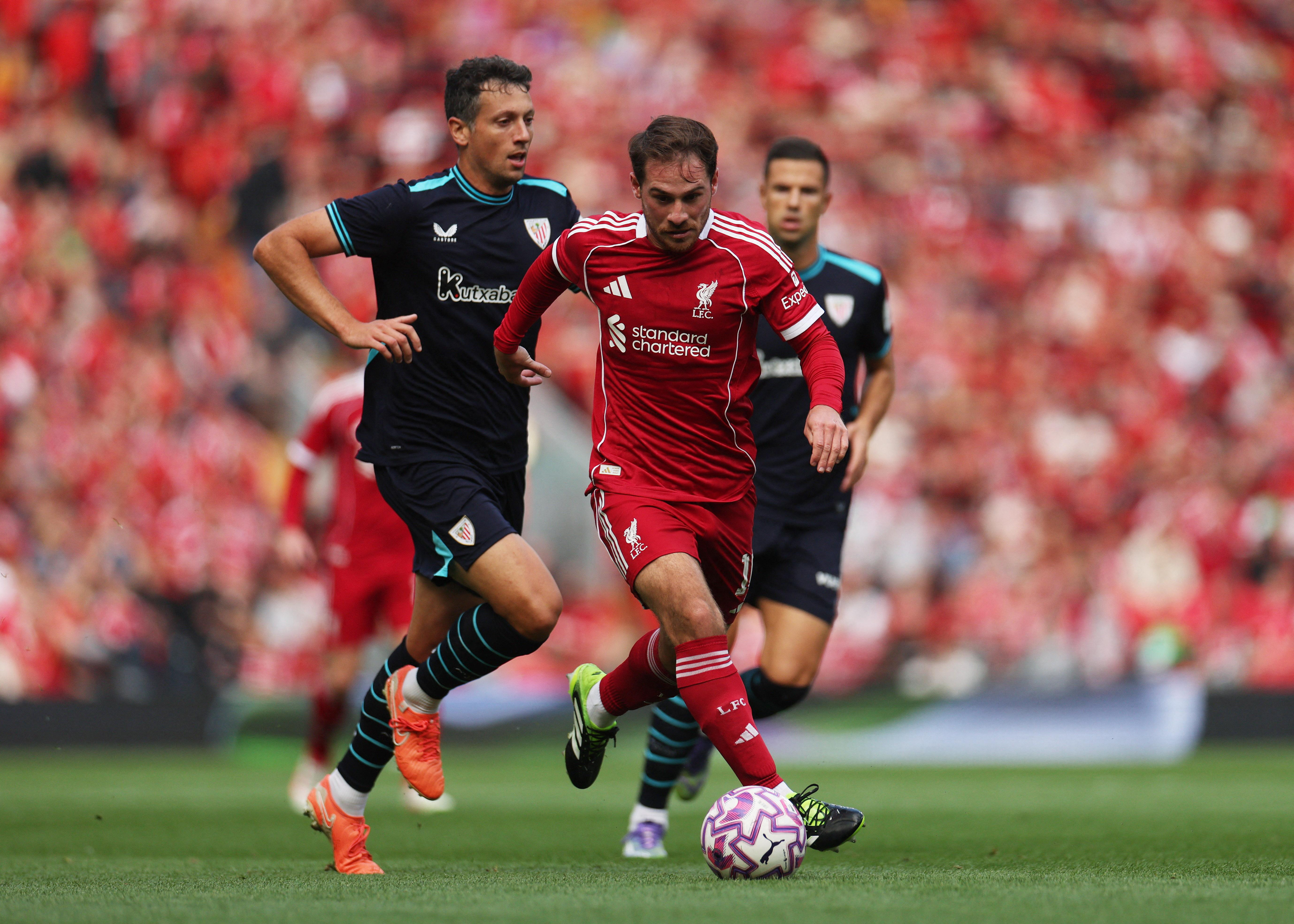 赤军防患型中场麦卡利斯特(中)此役有望复出,缓解中后场的防患压力