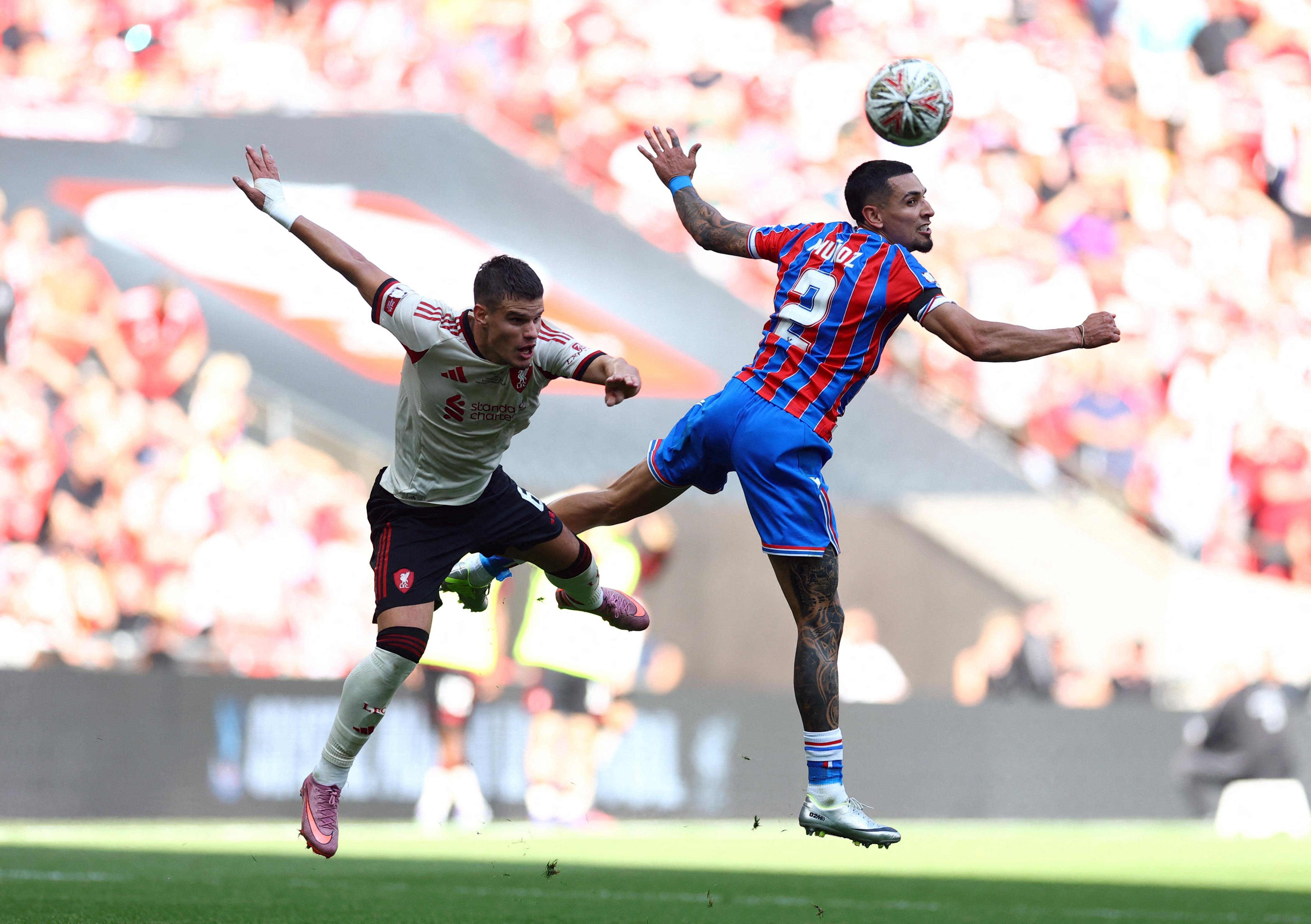 赤军左后卫科尔克兹(左)上场比赛被敌手的右中场穆尼奥斯(右)压制,但也作念出关键禁锢,推崇总体及格