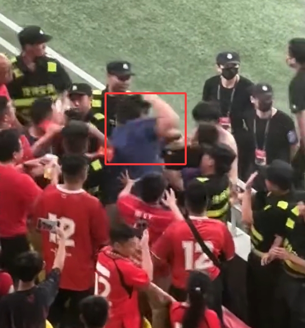 据现场球迷拍摄的视频显现,看台上发生了球迷突破。其中别称蓝穿着的挥拳打完对方,随后回身走了。