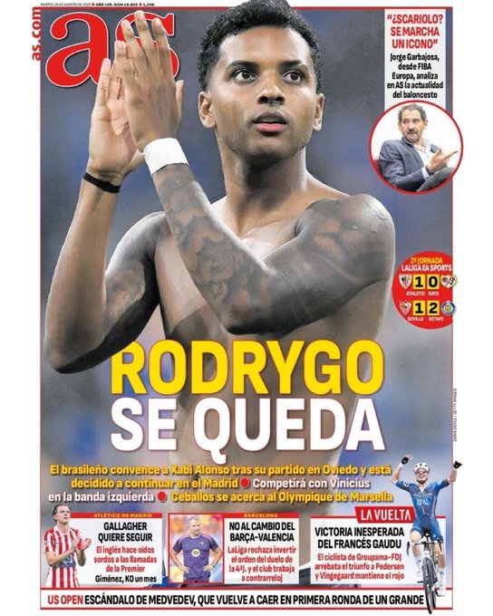 封面披露,这位巴西东谈主劝服了哈维-阿隆索,在对阵奥维耶多的比赛之后,他决定连接留在皇马。他将在左边路与维尼修斯竞争。塞巴略斯则接近加盟马赛。