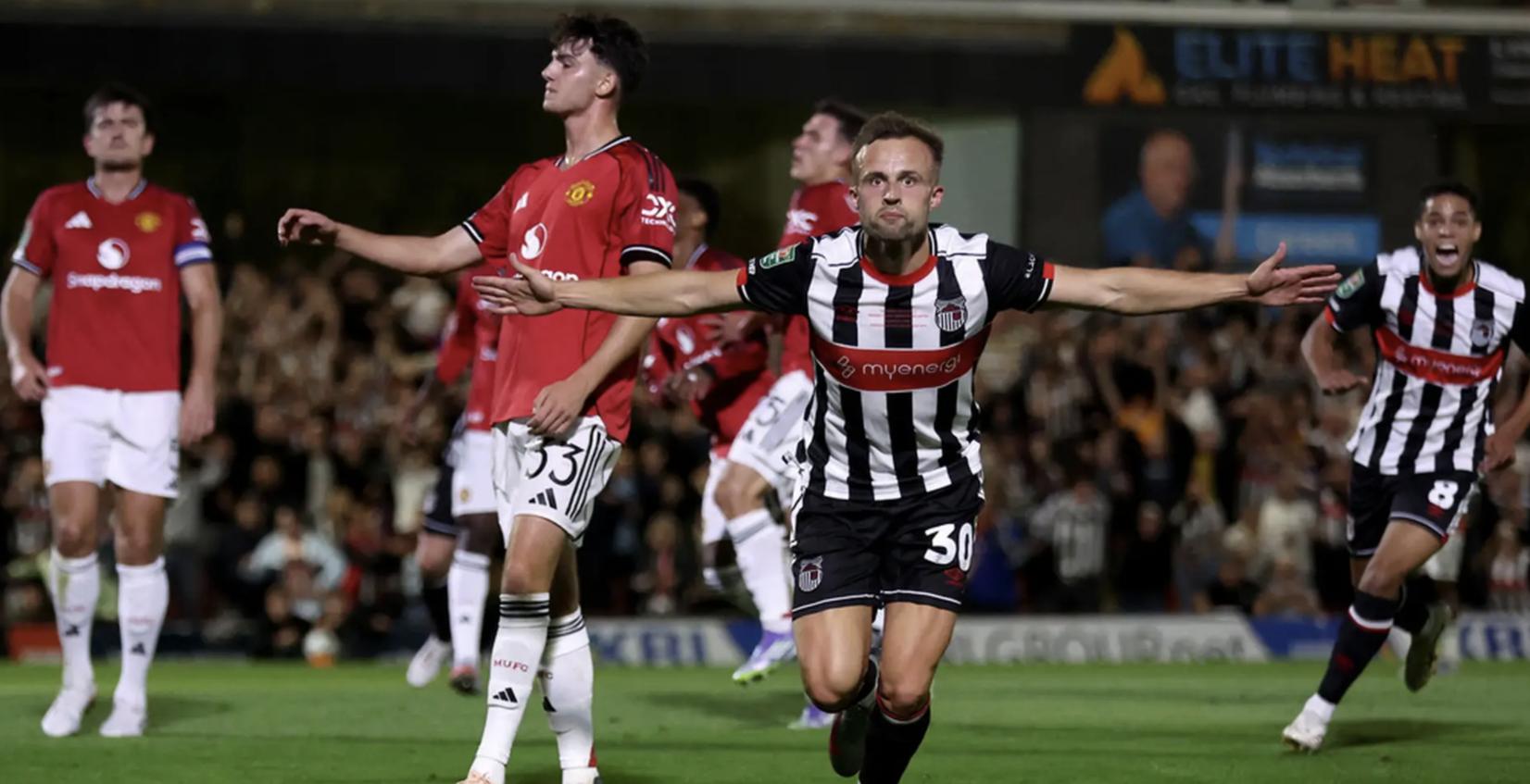 下半场主帅阿莫林换上B费等主力加强进军,第76分钟姆伯莫低射扳回一城,第89分钟马奎尔头球绝平。点球大战两边激战13轮,曼联11比12失利,总比分13比14爆冷出局,创下队史初次被第四级别球队淘汰的记录。