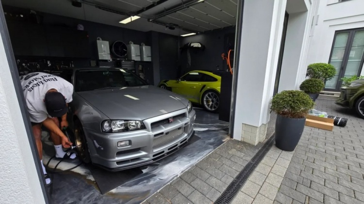 他的储藏中最引东谈主防御标是一辆深度改装的日产Skyline R34 GT-R,这款车因电影《速率与厚谊》而盛名。