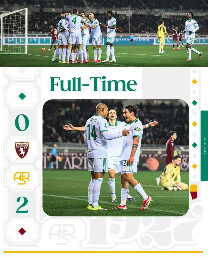北京技术1月19日01:00,意甲第21轮,皆灵镇守主场迎战罗马。上半场马伦破门,但越位进球无效,随后迪巴拉送助攻,马伦首秀破门。下半场迪巴拉射门被扑,随后他接伦施的助攻破门。最终罗马2-0客胜皆灵斩获联赛3连胜。